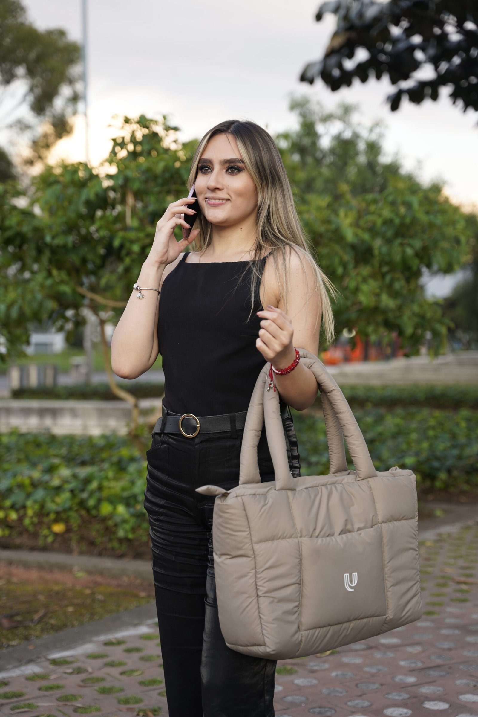 "La textura es deliciosa, muy suave y cómoda de llevar. Lo uso para ir a la oficina y también para salir, porque combina con todo. Los bolsos se ven modernos y de excelente calidad. Me sorprendió lo práctico que es para guardar el celular y llevarlo todo organizado."